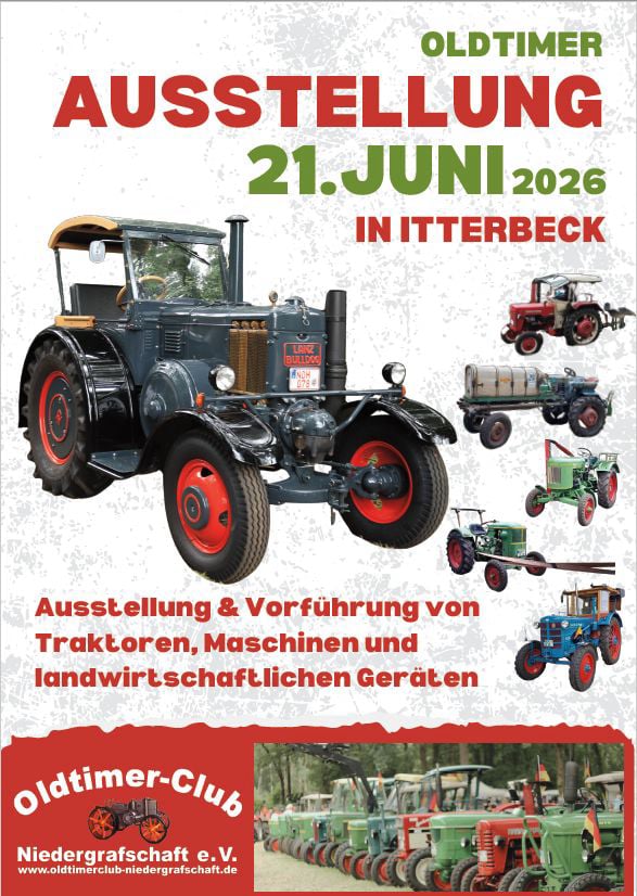In dem Jahr 2026 wird erneut eine Ausstellung & Vorführung alter Maschinen und Traktoren an der Voskuhle stattfinden.